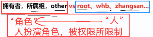 权限 = 角色 + 文件属性举例:拥有者 + rwx = 作为拥有者,有读写执行权
