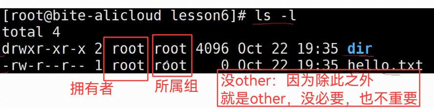 | o | other | 其他用户 | 既不是所有者、也不在组内的所有人 |