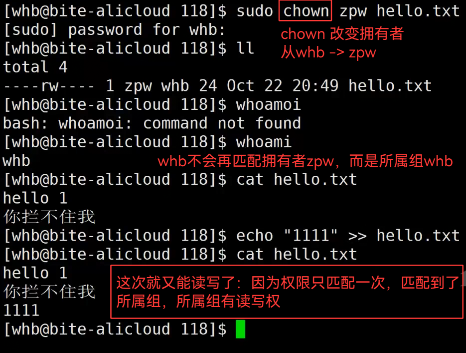 因为权限只匹配一次,匹配了,就中止向后查找。匹配了拥有者,所属组权限就不作数
