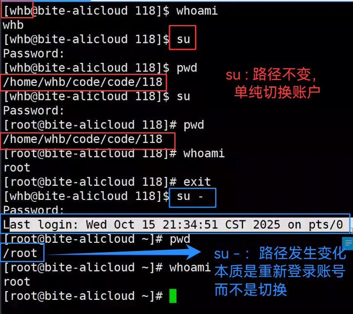 su,切换账号,路径不会发生变化