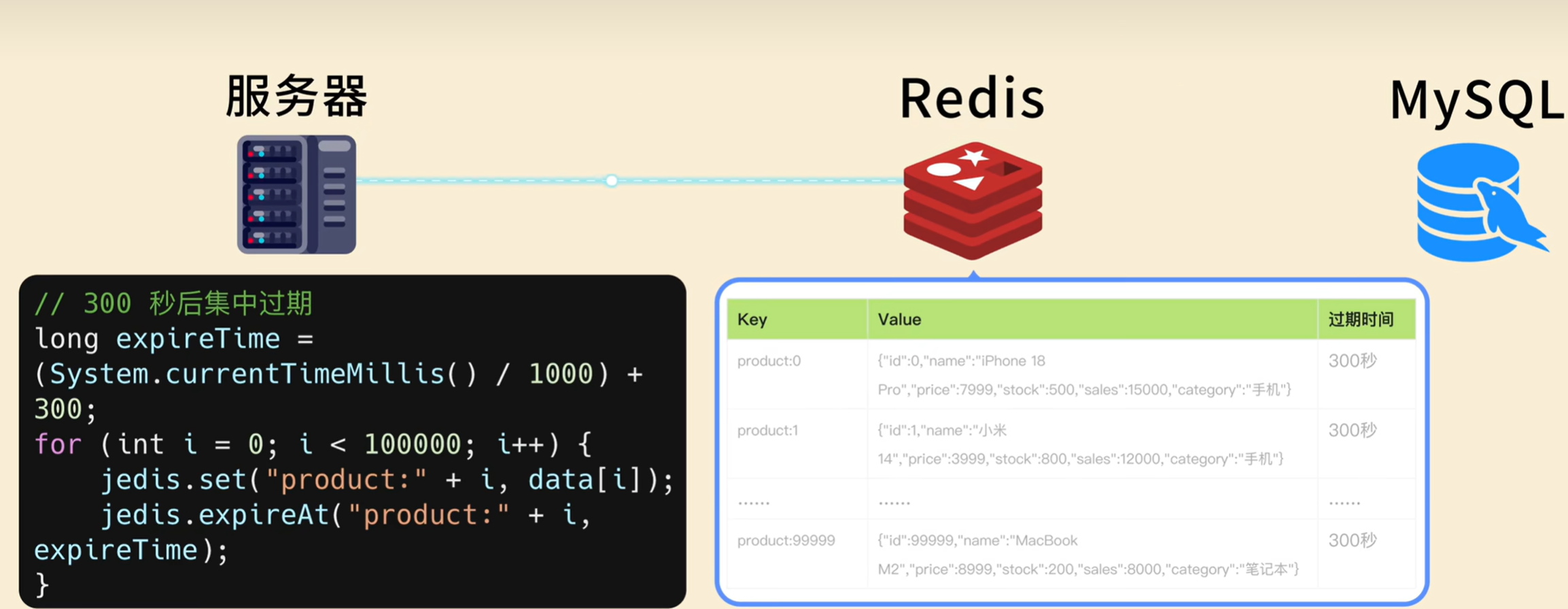jedis.expire("product:" + i, baseExpireTime + randomOffset);