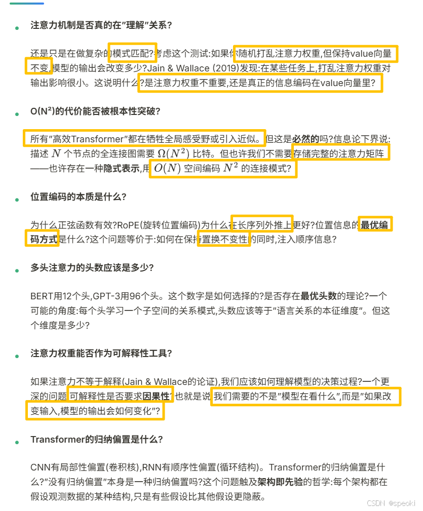 更微妙的是,注意力权重本身可能不是模型决策的真正原因。2019年的研究表明,即使随机打乱注意力权重,模型的输出有时也不会改变太多------因为真正的信息可能编码在value向量中,而不是注意力分布中。