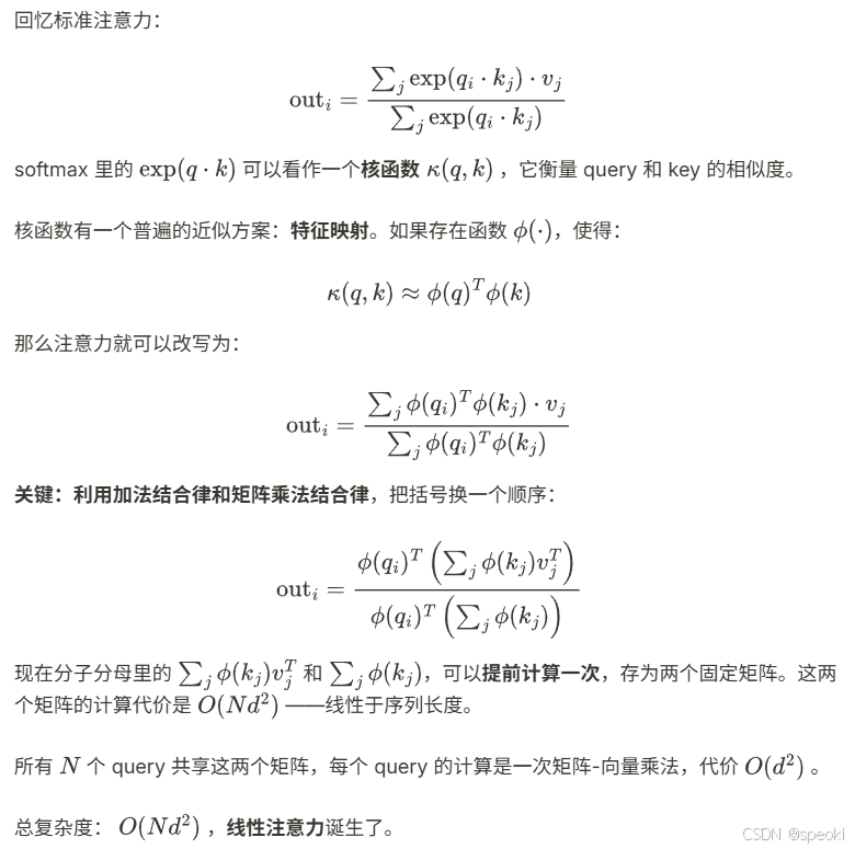 线性注意力: 用加法结合律换掉softmax