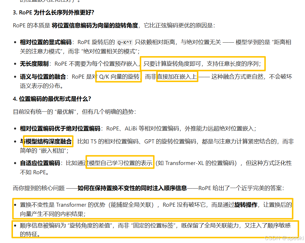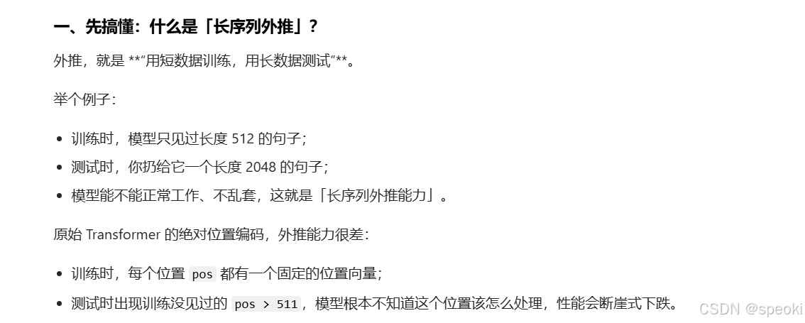 RoPE 就是后者,它学到的是通用的相对位置关系,而不是死记硬背每个位置的向量,所以外推能力强得多。