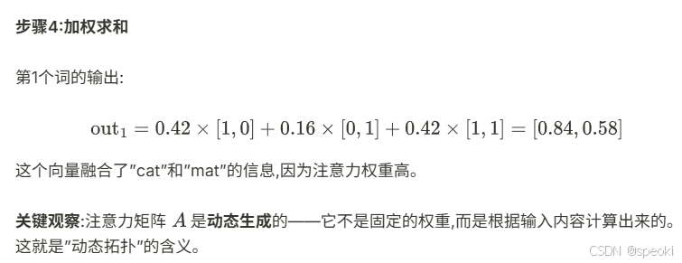 - 动态拓扑:注意力矩阵是根据输入内容动态生成的,不是固定的权重