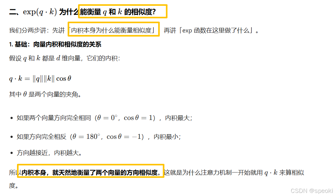 exp这个函数为什么可以衡量q和k的相似度?