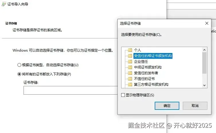 - 浏览器安装证书:点击下载好的证书,直接安装。