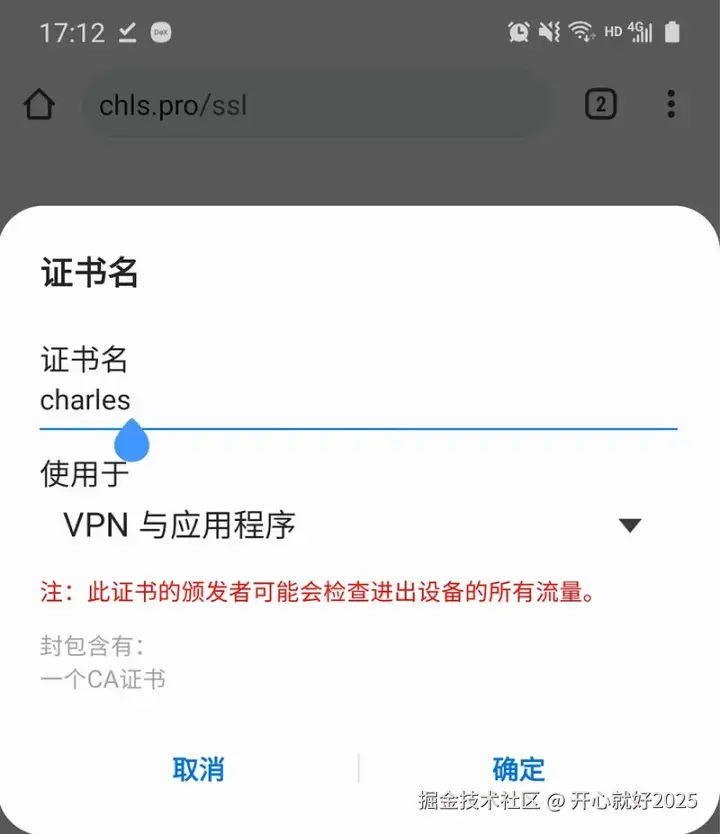 - 移动端配置证书:在移动端浏览器打开chls.pro/ssl,直接安装即可。