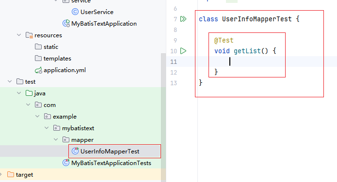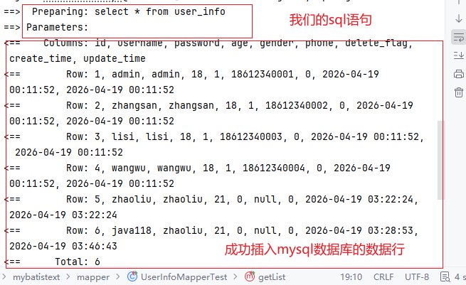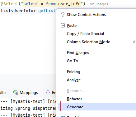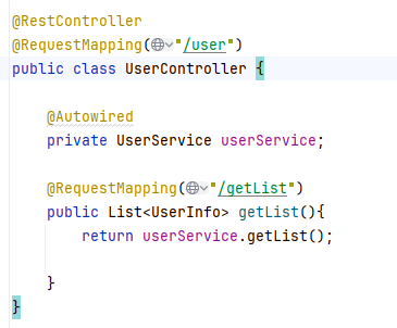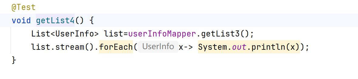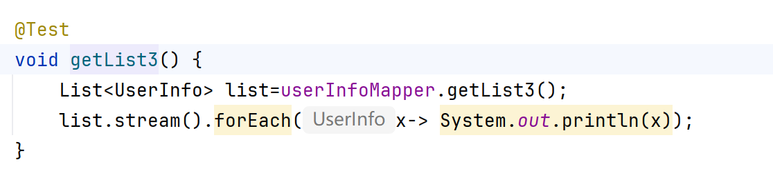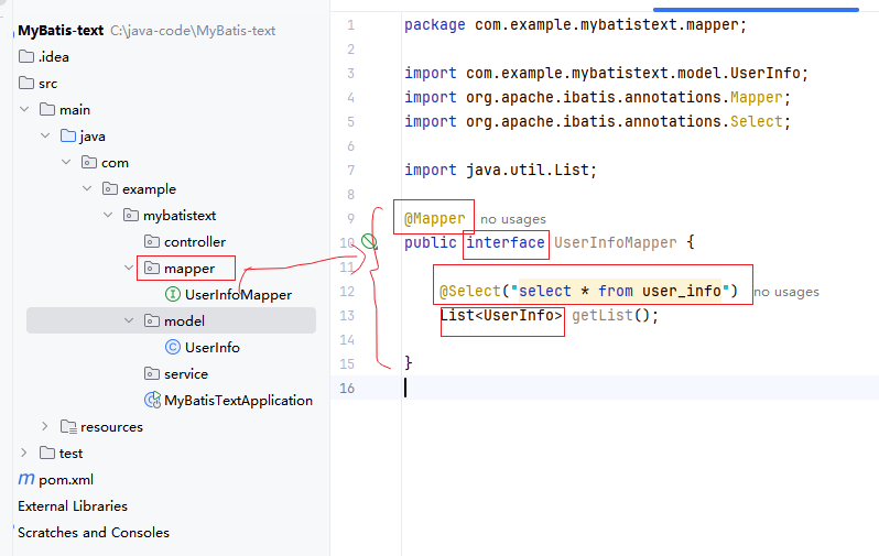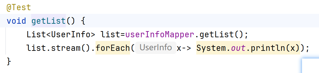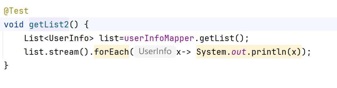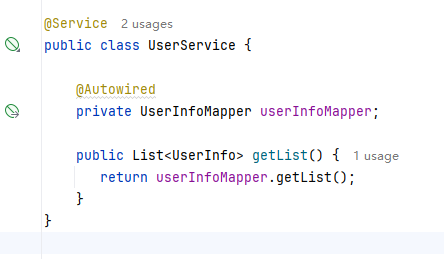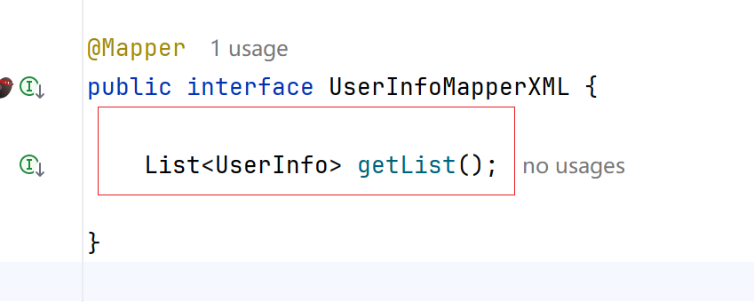 @Mapper,加在接口类上,表示我们让spring帮我们自动创建一个实现了UserInfoMapper的对象,并重写了里面的所有方法,此时getList()方法就被重写了。