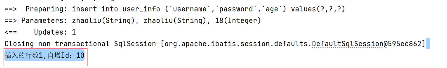 成功获取到了,自增id,也是一次就完成了插入,和查询,这两个步骤。