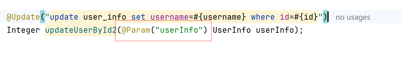 更新成功,所以当加上了@Param注解之后,不能写成类似于#{id}的样子,而是要写成#{重命名之后的类名.id}才可以成功绑定。