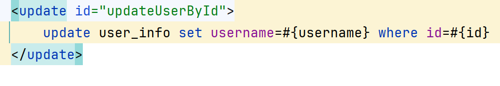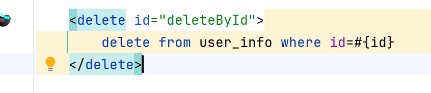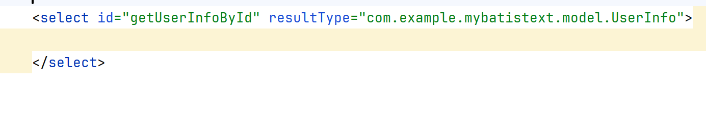 xml格式的部分写法,而且还自动识别出我方法名getUserInfoById的目的是:将要进行查询操作,所以就是select标签(我这样叫的,大家不必认真讲究说,要读成啥,咋表示)