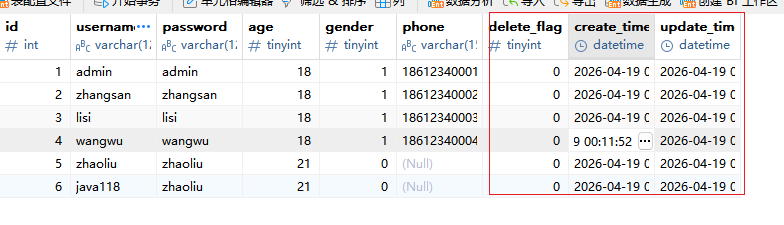 发现我们没有做任何处理,加上这个yml配置文件,就自动帮我们处理好了字段和属性得映射问题,虽然是这样子的,但我想说的是,数据库的字段如果是delete_flag,java属性是deleteFlag,