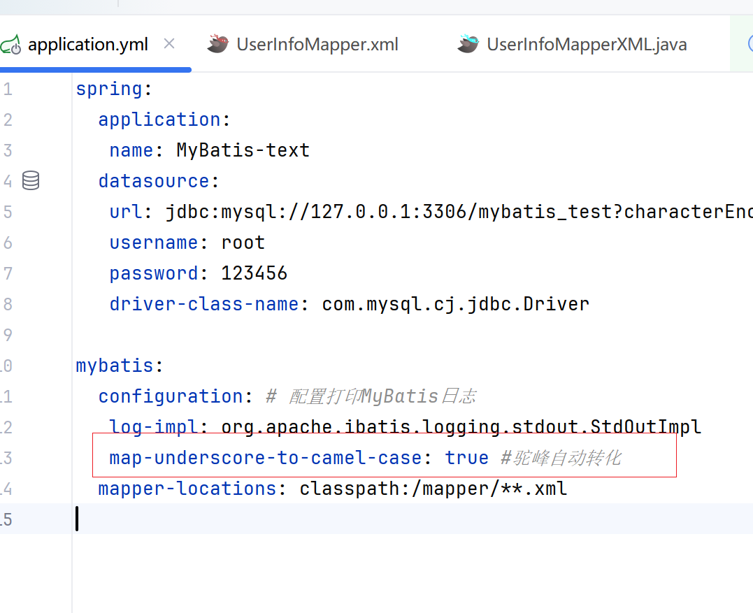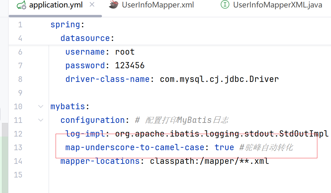 我们再yml文件里配置一下驼峰自动转化