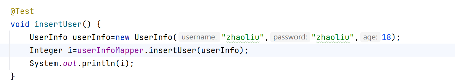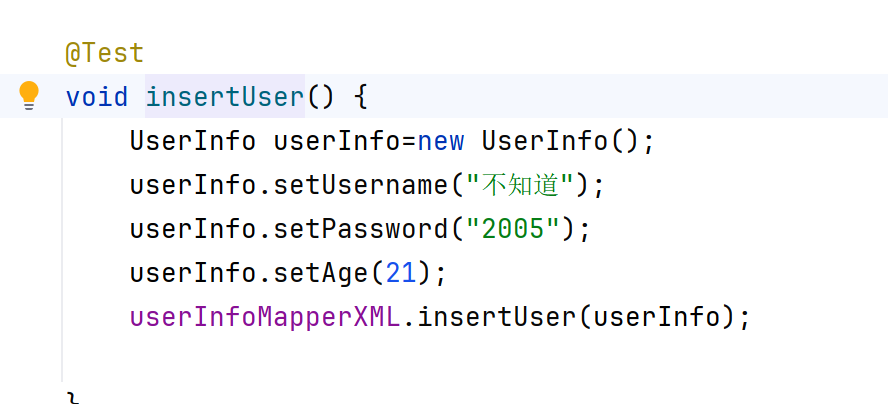 需要注意的是,我们的insert语句,不用写resultType等于啥类型,因为这是插入语句,返回的是插入了几条数据。