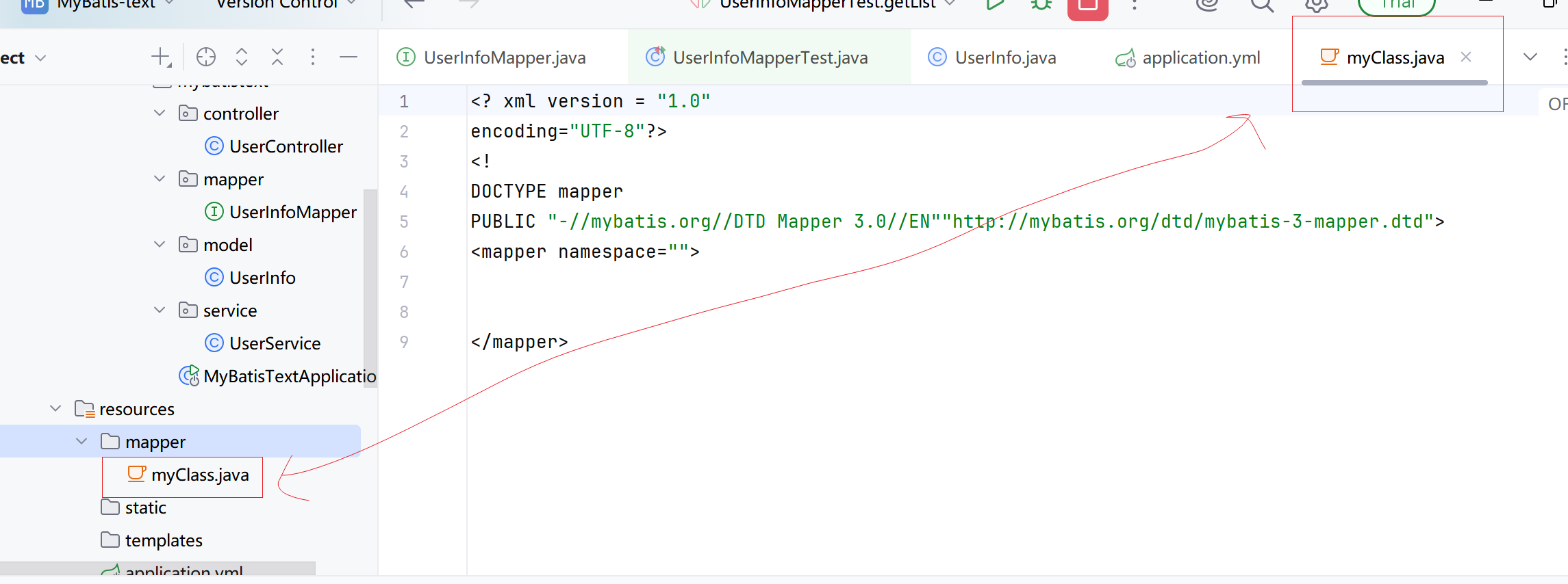 com.example.mybatistext.mapperc.UserInfoMapperXML