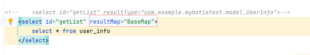 然后我们用了个新注解@ResultMap,然后传入BaseMap,