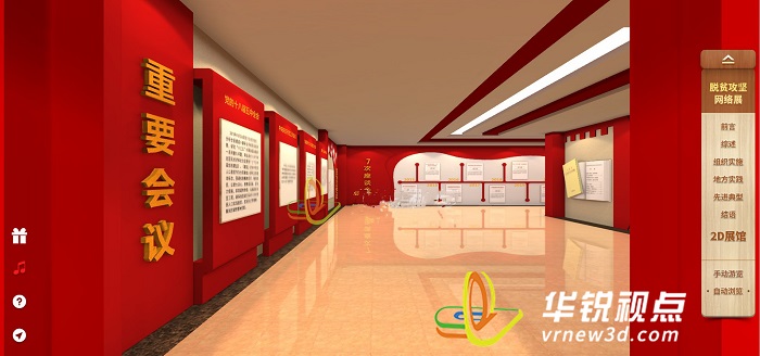 VR党建展厅是依托VR 虚拟现实、Web3D 三维可视化等前沿技术,打造的沉浸式党建教育空间。它打破传统展厅静态、单向的展示模式,通过 360° 全景还原红色历史场景、互动式体验革命故事、数字化呈现党建成果,让观众 "走进" 历史、对话先辈。