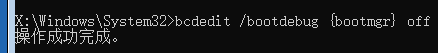 虚拟机启动后会等待调试器的连接,如果不需要进行调试了使用下面的命令关闭对bootmgr的调试引擎: