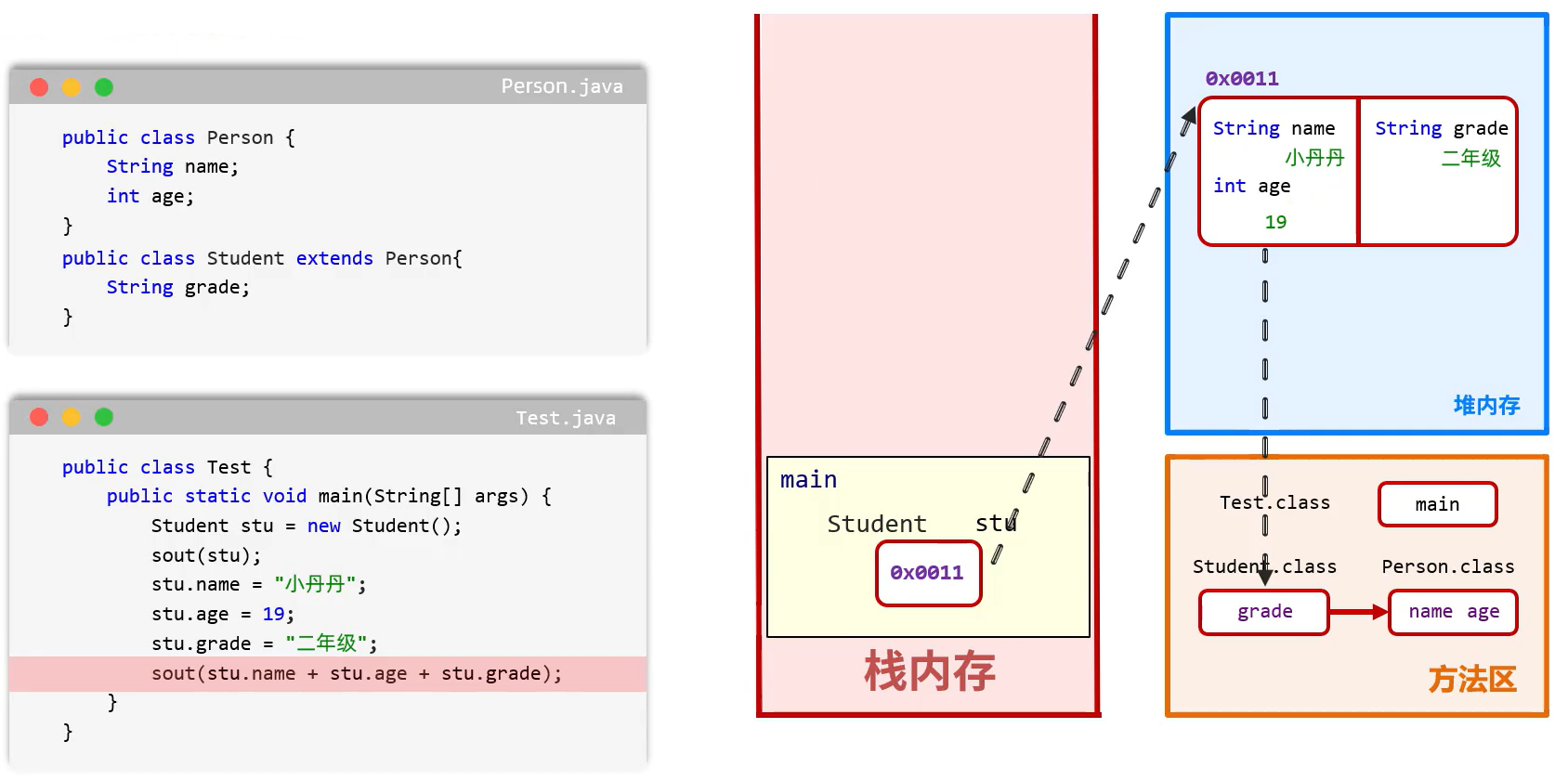 - 成员方法: 虚方法可以被继承(虚方法: 普通成员方法, 非final/static/private修饰的方法 )