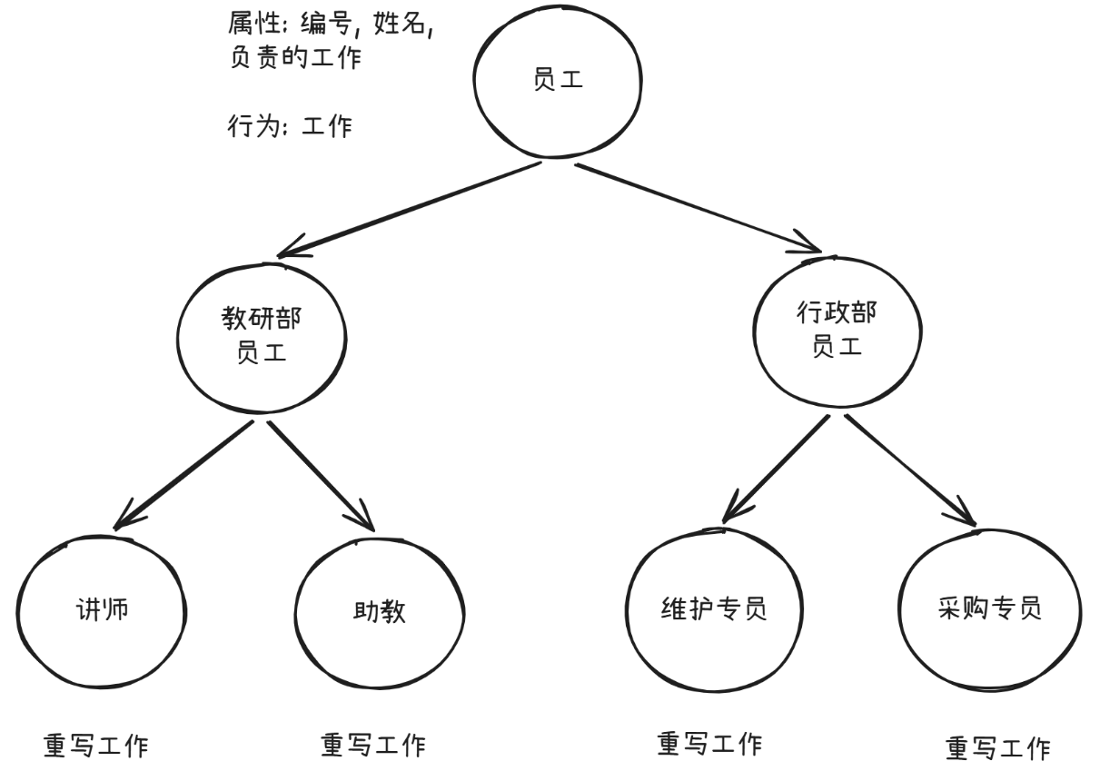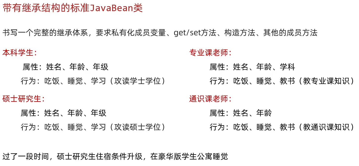 书写规则: 把多个子类中相同的属性抽取父亲当中(抽取共性)