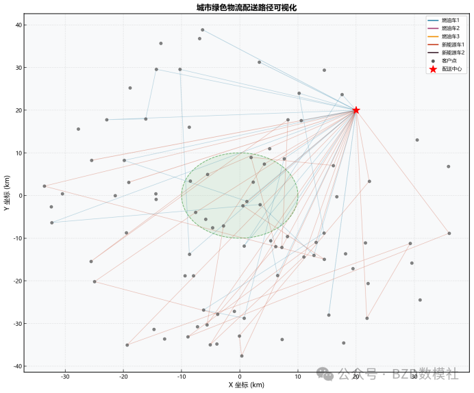 | 策略C | 中转站模式:燃油车送货至绿区边界,新能源车二次配送 |
