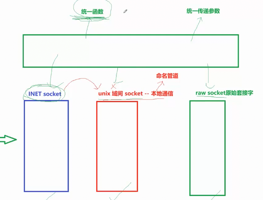 这三种套接字不是独立的东西,而是 socket 这个大接口下的 3 种具体实现、3 种通信模式。
