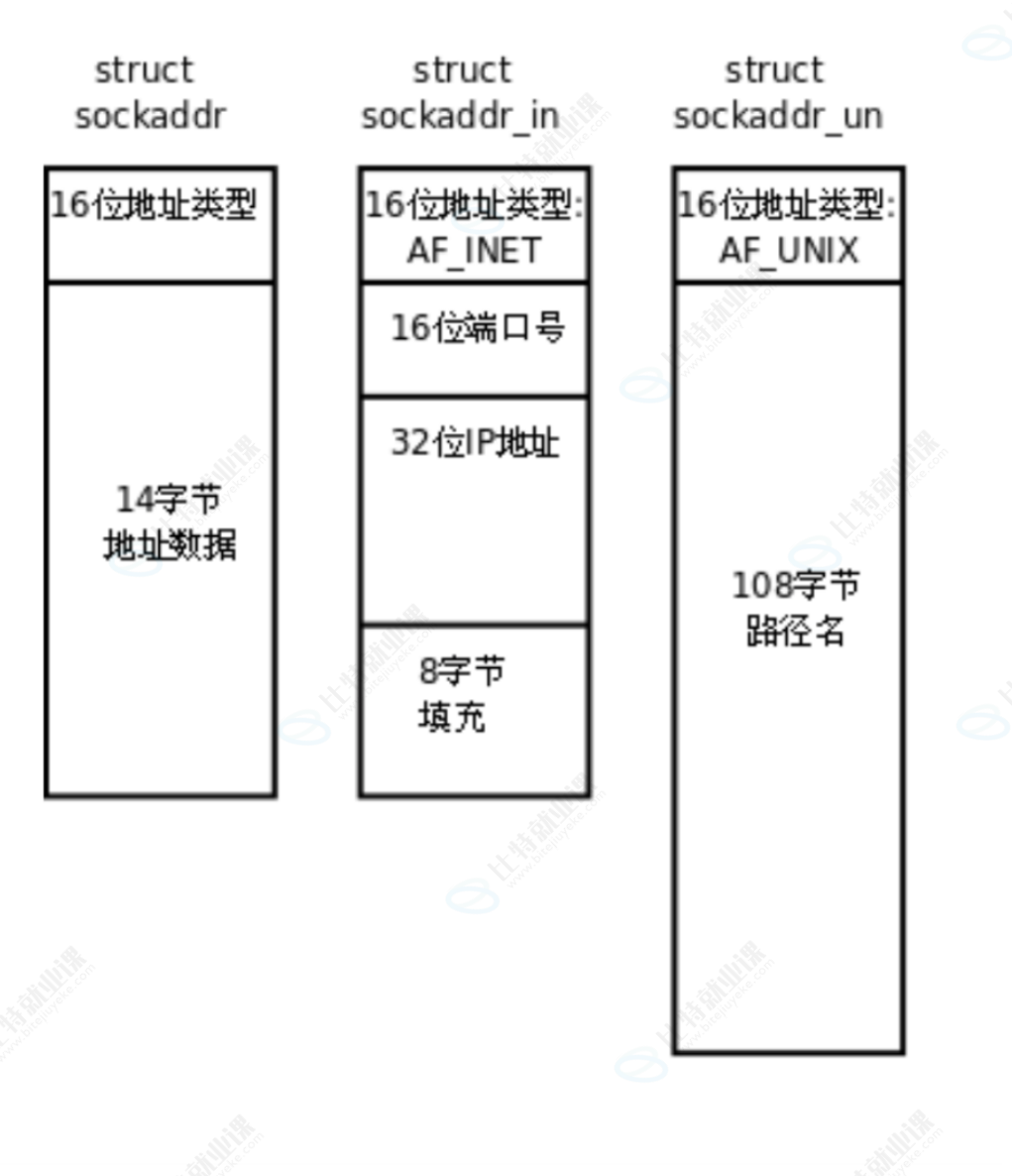 struct sockaddr_in、struct sockaddr_un 是两种业务子类结构体 :