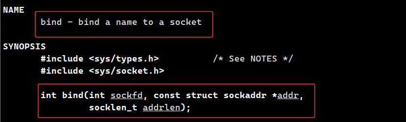 第二个参数 addr 是通用地址结构体指针 sockaddr*,我们之前填好的 sockaddr_in/sockaddr_un 都要强制转成这个类型。内核通过它开头的地址族字段,识别是哪种地址(网络 / 本地域)。