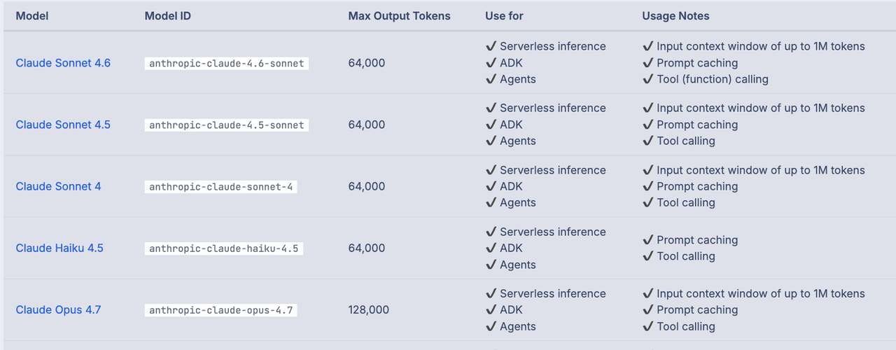 模型ID请参考Anthropic官方文档:https://platform.claude.com/docs/zh-CN/about-claude/models/overview