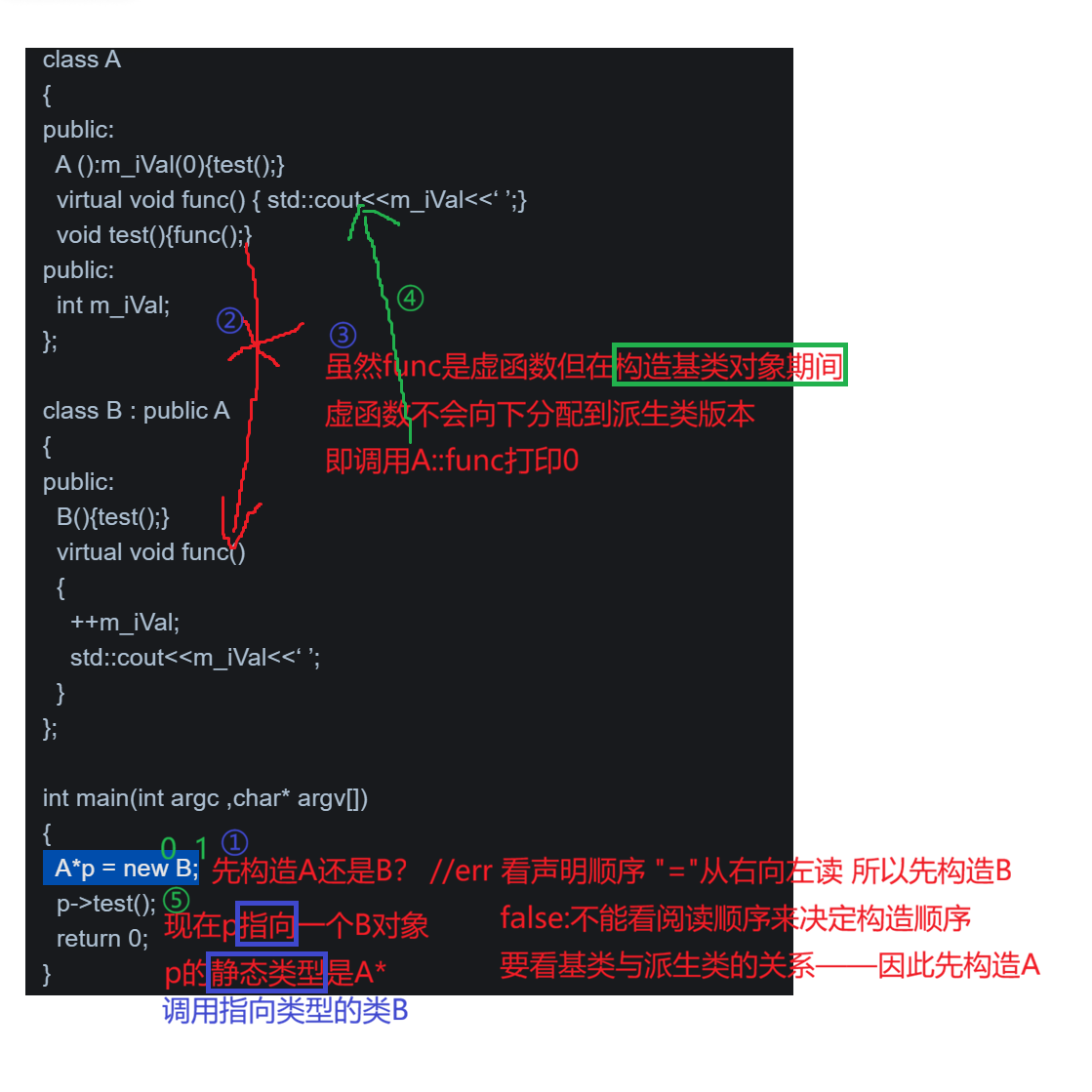 A* pa = (A*)new B; // pa 的静态类型是 A*,实际指向 B 对象