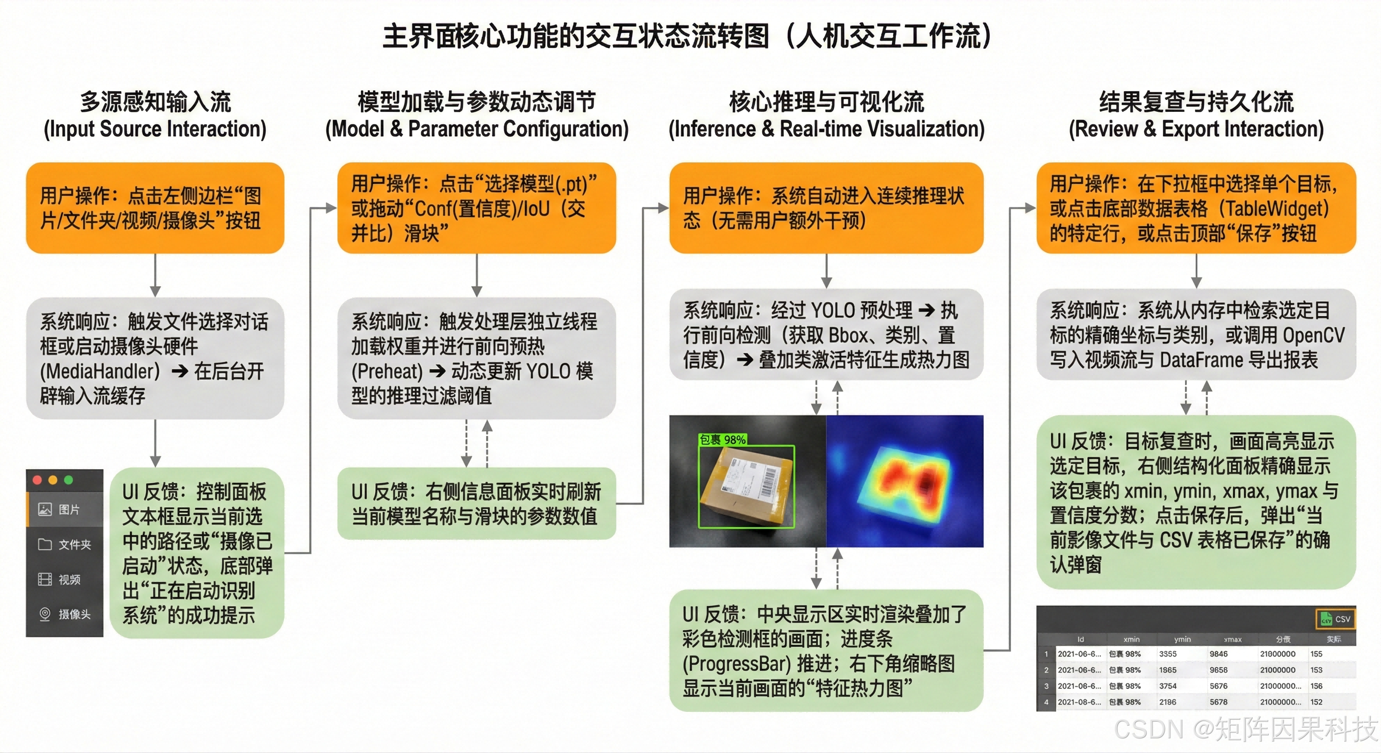 图注:系统从初始化到多源输入,完成预处理、推理与界面联动,并通过交互形成闭环。