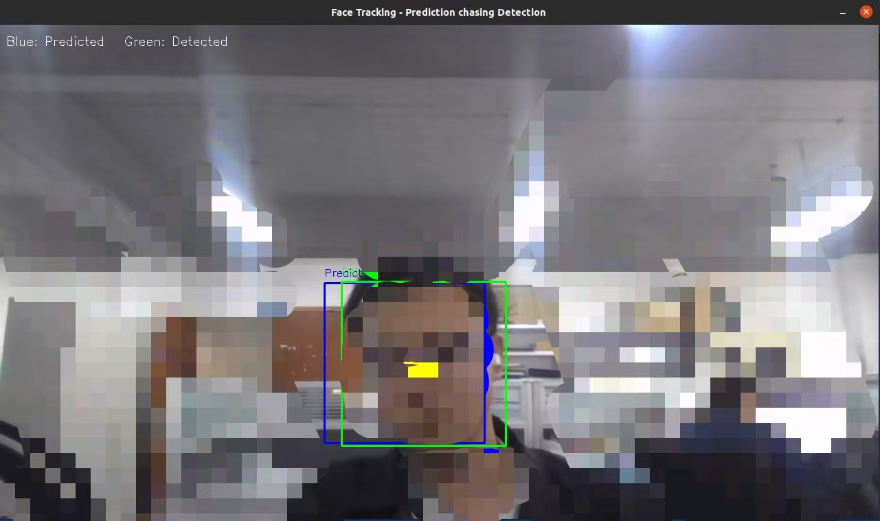 cv2.imshow('Face Tracking - Prediction chasing Detection', frame)