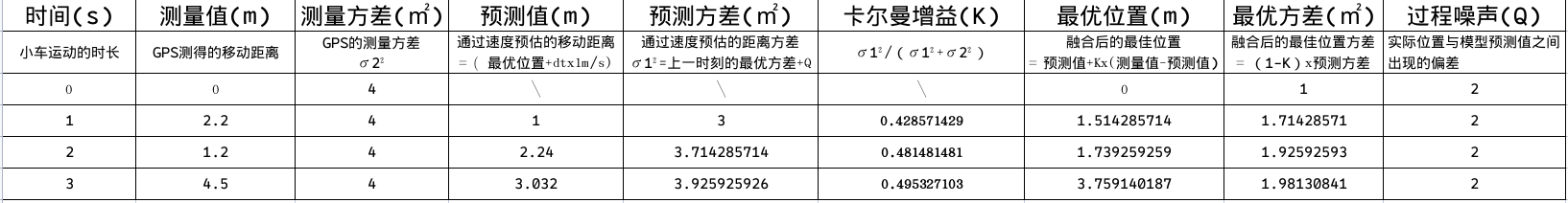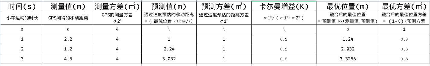 同时,我们假设GPS测量的移动距离也有4m的波动,既σ2²=4 m(即标准差 σ2=2 m,这个数值一般传感器厂家会给的)。