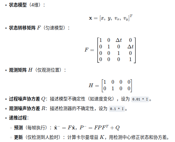 **说明:**这里人脸识别的方式不是关键,关键是卡尔曼滤波,所以也可以用yolo等方法。