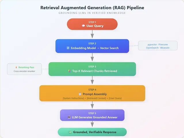 把 LLM 绑定到事实信息上,RAG 是迄今最具杀伤力的一种技术。思路很直白:不让模型去训练数据里回忆事实,而是从经过验证的知识库中检索相关事实,再直接注入到 prompt 里。