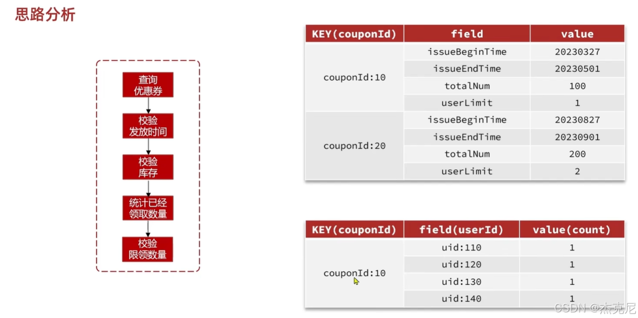 同时这里也为缓存空值防穿透做铺垫:数据库不存在的优惠券,也往 Redis 存空 Hash,避免重复击穿 DB