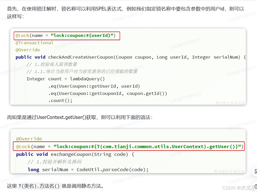 问题:在当前业务中,我们的锁对象本来应该是当前登录用户,是动态获取的。而加锁是基于注解参数添加的,在编码时就需要指定。怎么办?