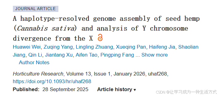 籽用大麻(Cannabis sativa)单倍型解析基因组组装及 Y 染色体与 X 染色体分化分析