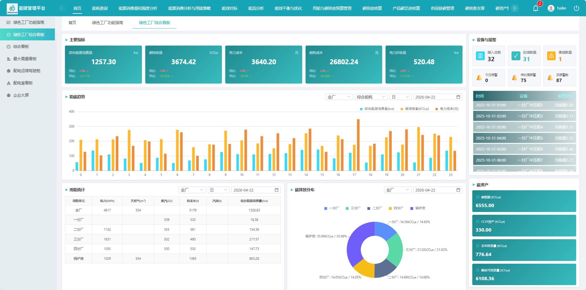 - 国标级核算引擎:内置 GB/T 32150 系列工业企业温室气体核算标准,支持自动生成合规的单位产品能耗计算书、碳盘查报告;