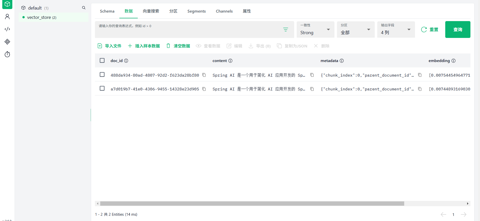 # 3. 删除旧 Collection,让 Spring AI 自动重建