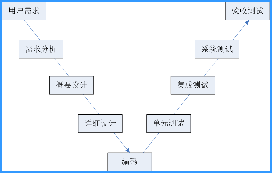 - 对应测试:验收测试 → 系统测试 → 集成测试 → 单元测试