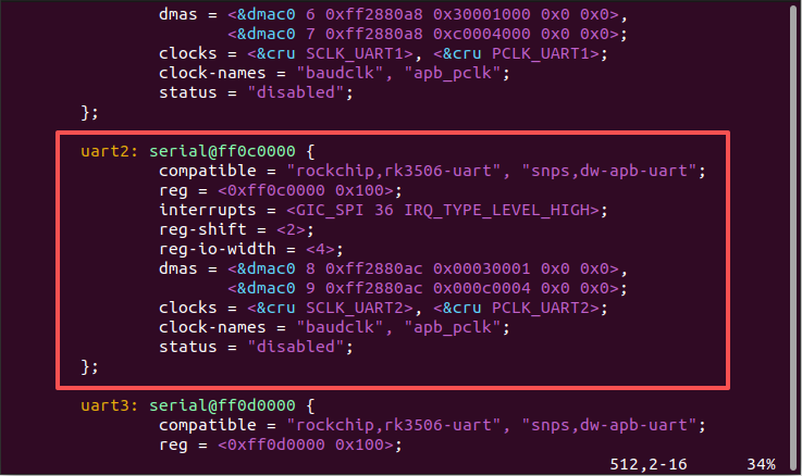 确定引脚后,需要在设备树中配置IOMUX参数以确保引脚正确工作在UART2模式。