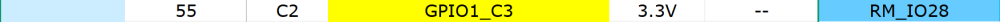在引脚复用表中,通过查看 Alt0~Alt8列可了解各引脚的可选功能;RK3506B采用矩阵IO设计,将98 个功能信号灵活映射至32个RM_IO引脚。针对UART2功能,从"RM_IO功能"列表中找到UART2_TX、UART2_RX信号后,在支持RM_IO的引脚中,遵循"优先选用40Pin排针引脚"的布局原则,最终选定将UART2_TX、UART2_RX映射至RM_IO26、RM_IO28,对应连接器引脚号46、55。