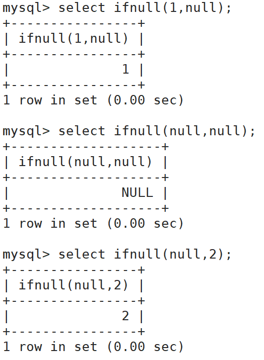 ifnull(val1, val2) 如果val1为null,返回val2,否则返回val1的值