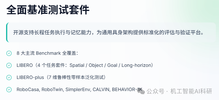 全面适配了 LIBERO、RoboCasa 等业界权威评测基准。