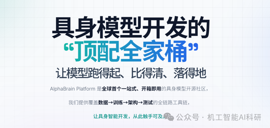 AlphaBrain Platform 的开源,标志着具身智能开发从"重复造轮子"转向"标准化集成"。