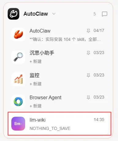 第二步:新建一个名为llm-wiki的AutoClaw分身。