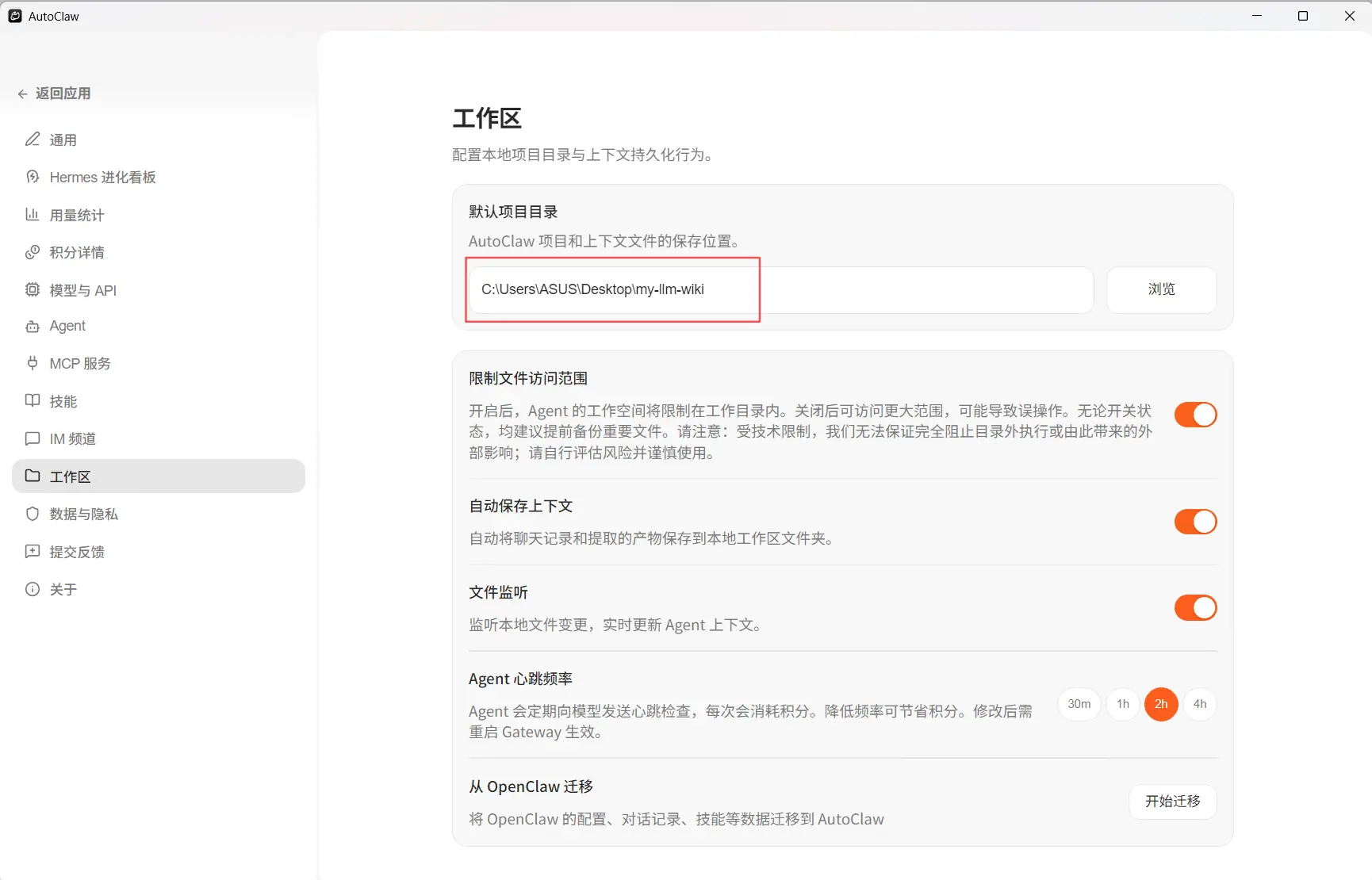 第三步,新建一个空目录, 例如: "my-llm-wiki",作为你的 wiki vault,并将其设置llm-wiki的项目目录。