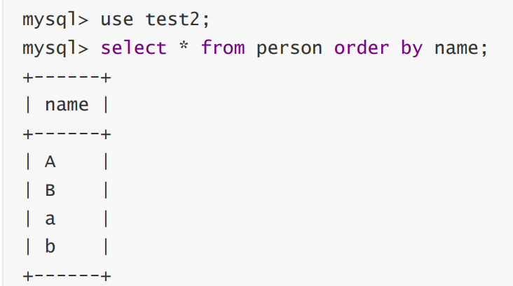 create database test2 collate utf8_bin;